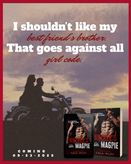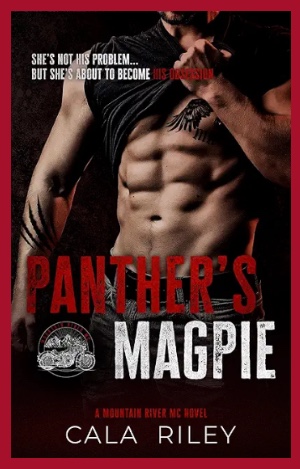 REVIEW: PANTHER’S MAGPIE is the first instalment in Cala Riley’s contemporary, adult MOUNTAIN RIVER MC erotic, MC romance series. This is Mountain River MC president Calloway ‘Panther’ Alstone, and twenty-two year old, Maggie ‘Magpie’ Ellis’ story line.