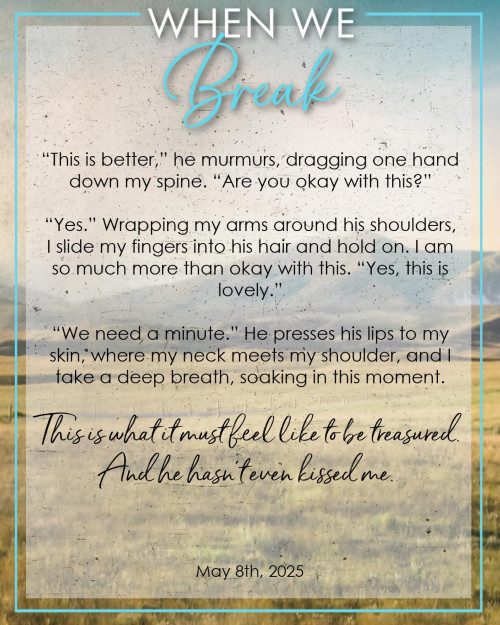 Told from three first person perspectives (Beck, Skyla, Stalker) WHEN WE BREAK follows Skyla Gallagher in the aftermath of a career ending injury. Skyla Gallagher was a prima ballerina but a stalker, and an injury, forces Skyla to leave her beautiful New York, and head to the open skies of Bitterroot Valley, Montana, where she will make new friends, and open a dance studio, teaching to children. Meeting Beck Blackwell stirs something deep within our story line heroine but the demons from her past refuse to let go, and Skyla struggles to open her heart to anyone else. Beckett Blackwell is a rancher, and very close to his siblings and friends but meeting Skyla Gallagher pushes Beckett to pursue the woman with whom he will fall in love but Skyla’s stalker refuses to back down, and law enforcement claim their hands are tied.