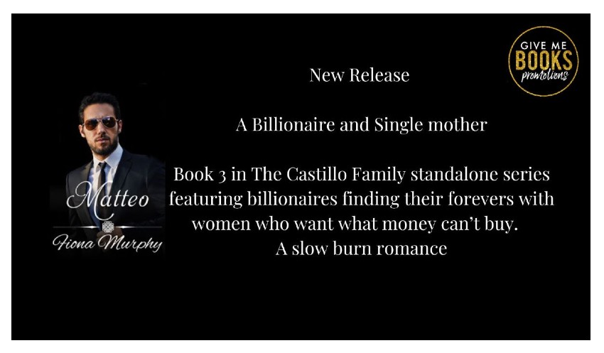 REVIEW: MATTEO is the third instalment in Fiona Murphy’s contemporary, adult THE CASTILLO FAMILY erotic, romance series. This is thirty-nine year old billionaire oncologist Dr. Matteo Castillo, and twenty-seven year old single mother Amy Richards’ story line. MATTEO can be read as a stand alone without any difficulty. Any important information from the previous story lines is revealed where necessary.