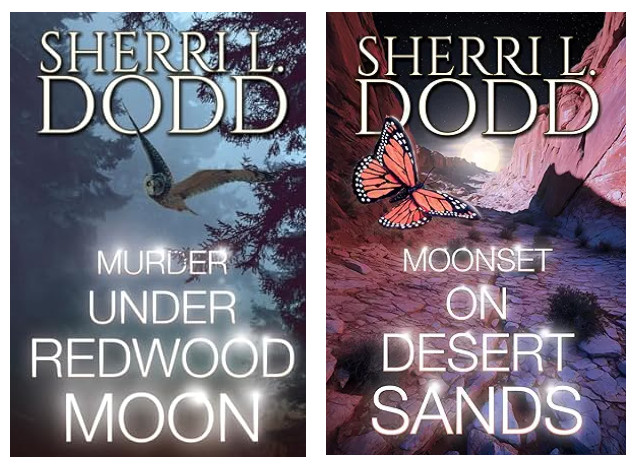 Murder Under Redwood Moon/Moonset on Desert Sands (Murder, Tea & Crystals 1 & 2) by Sherri L Dodd-reviews & excerpt