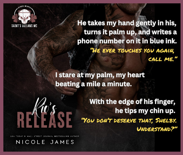 The secondary and supporting characters include several members of the Saint’s Outlaws MC: Las Cruces including president Rio and Shelby, treasurer and secretary Bandit; Road Captain Mauler; VP Zig, and Enforcer Bagger. We are introduced to Luisa’s immediate and extended family, as well as her ‘intended’ Mateo.