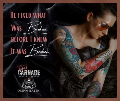 REVIEW: TOTAL CARNAGE is the first instalment in Quinn Slater’s contemporary, adult RBMC: LEXINGTON KY erotic, paranormal, MC romance series, a part of the multi-authored RBMC. This is Vincent (Vin) ‘The Ghost’ Reed, and Raven Stansfield’s story line.